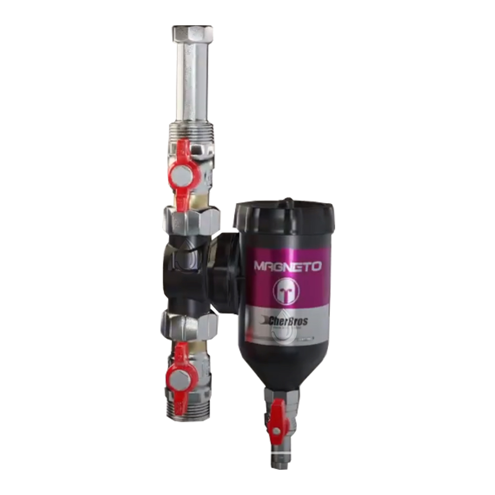 Το μοναδικό εξάρτημα του Magneto συγκεντρώνει την ροή του νερού, βοηθά στην κατακράτηση των σωματιδίων και διασφαλίζει την αποφυγή φραγής του φίλτρου. Το σύστημα του υδροκυκλώνα, βρίσκεται σε ανεξάρτητο θάλαμο από τον μαγνήτη όπου εργάζεται υποστηρικτικά και απρόσκοπτα. Συγκρότημα ισχυρού μαγνήτη με πεδίο 9000+ G για την διήθηση των βλαβερών σωματιδίων μαγνητίτη. Μέγιστη ροή: 50 l/min (σε λέβητες έως 60KW) Θερμοκρασία λειτουργίας: 100°C Μέγιστη πίεση λειτουργίας: 3 bar Τοποθέτηση: Το σώμα είναι πάντα κάθετο. Πλεονεκτήματα: Μικρού μεγέθους μονάδα 300ml, σχεδιασμένη για τοποθέτηση σε μικρούς χώρους Η εγκατάσταση γίνεται σε σειρά με το ΤΑΦ, το οποίο έχει δυνατότητα περιστοφής 360° Η κατακράτηση των κατάλοιπων επιτυγχάνεται με τον ισχυρό μαγνήτη Νεοδυμίου συνδυαστικά με το σύστημα υδροκυκλώνα όπου βρίσκεται σε ξεχωριστό θάλαμο για την απρόσκοπη λειτουργία τους Απλή συντήρηση, χωρίς εργαλεία! Διπλές τσιμούχες στις ενώσεις της μονάδας 10ετής εγγύηση για το MAGNETO (σώμα και εξαρτήματα)